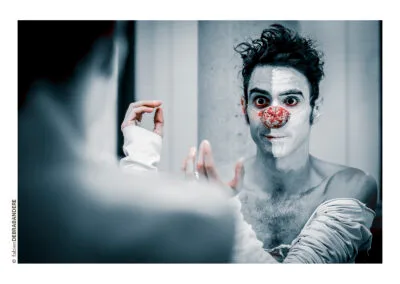 Mais dans ce jeu de poupées russes, qui contrôle qui ? Qui élève qui ? Le spectacle propose de sonder le lien qui unit l’acteur à son personnage. Il y a d’un côté le créateur cérébral et de l’autre sa créature organique. L’homme social face au clown sans filtre. Il y sera question d’éducation, de transmission, de garde-fous, de libre-arbitre, d’autocensure et d’oppression sociale.