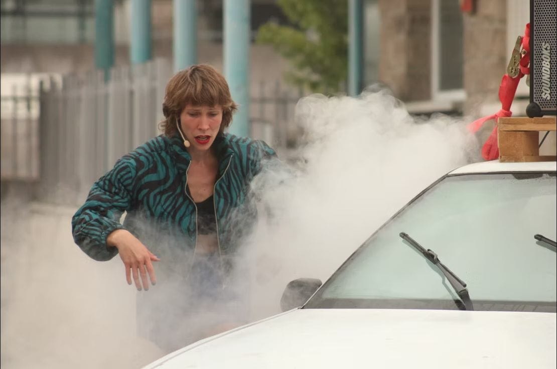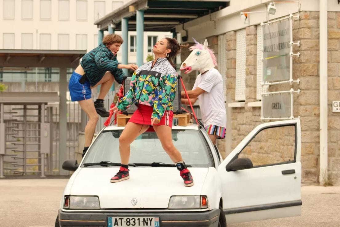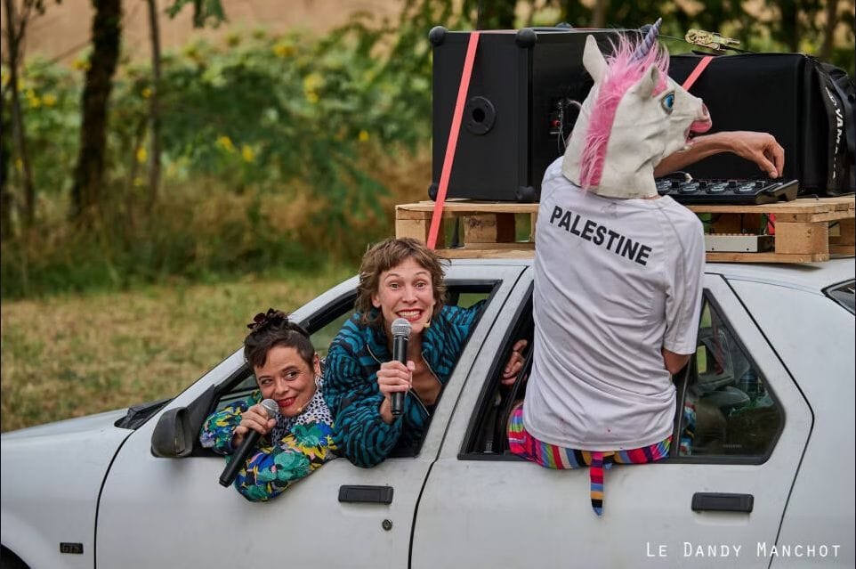 Une vieille bagnole déboule, sound-system à balle. Les VOYOUeS sont en cavale. Un monde oppressant les poursuit. Objectif : fête, échappée, intensité. Iels rêvent de se suivre à jamais dans la fuite, et cherchent à embarquer du monde avec elleux. Et puis ça déraille, ça pète, même ça, ça ne marche plus. Leur bagnole leur ressemble, il y a un projet de fond à ré-inventer.